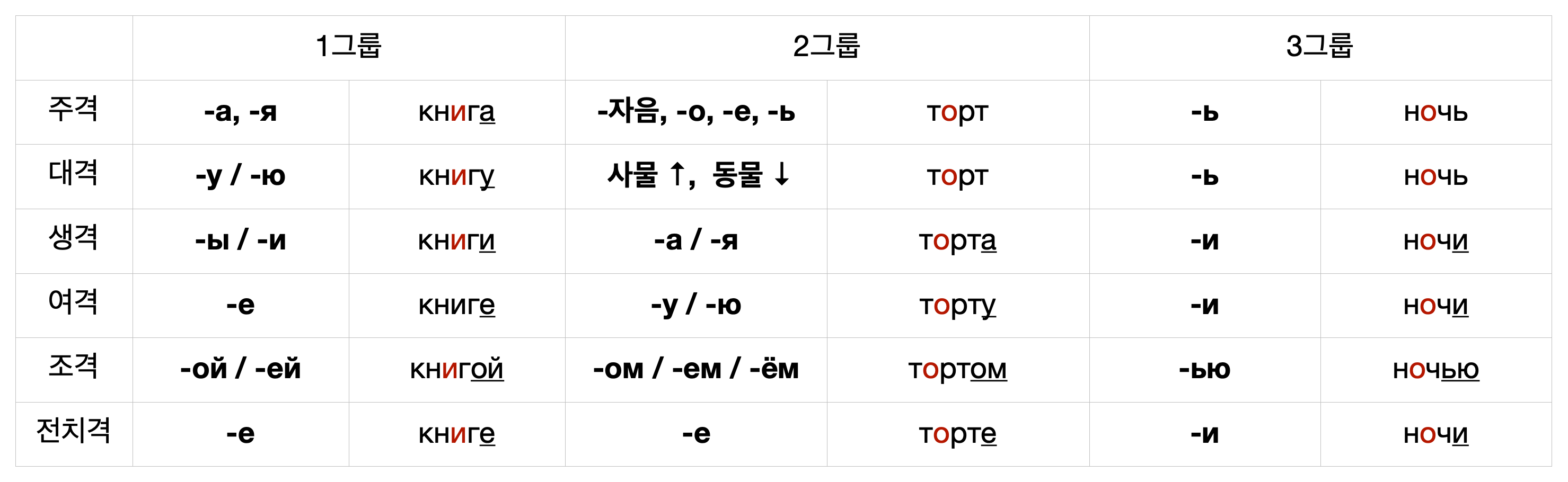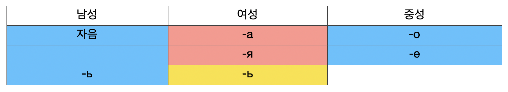 3 그룹 :-ь 로 끝나는 단어중 여성