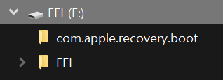 포멧된 EFI USB안에 com.apple.recovery.boot 폴더를 만들고 2-2 에서 생성된 BaseSystem 파일 2개를 넣습니다.