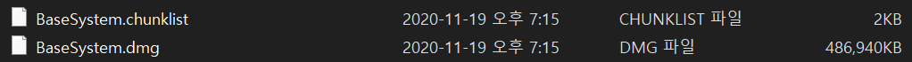 그럼 아래와 같이 BaseSystem 파일이 2개 생깁니다.