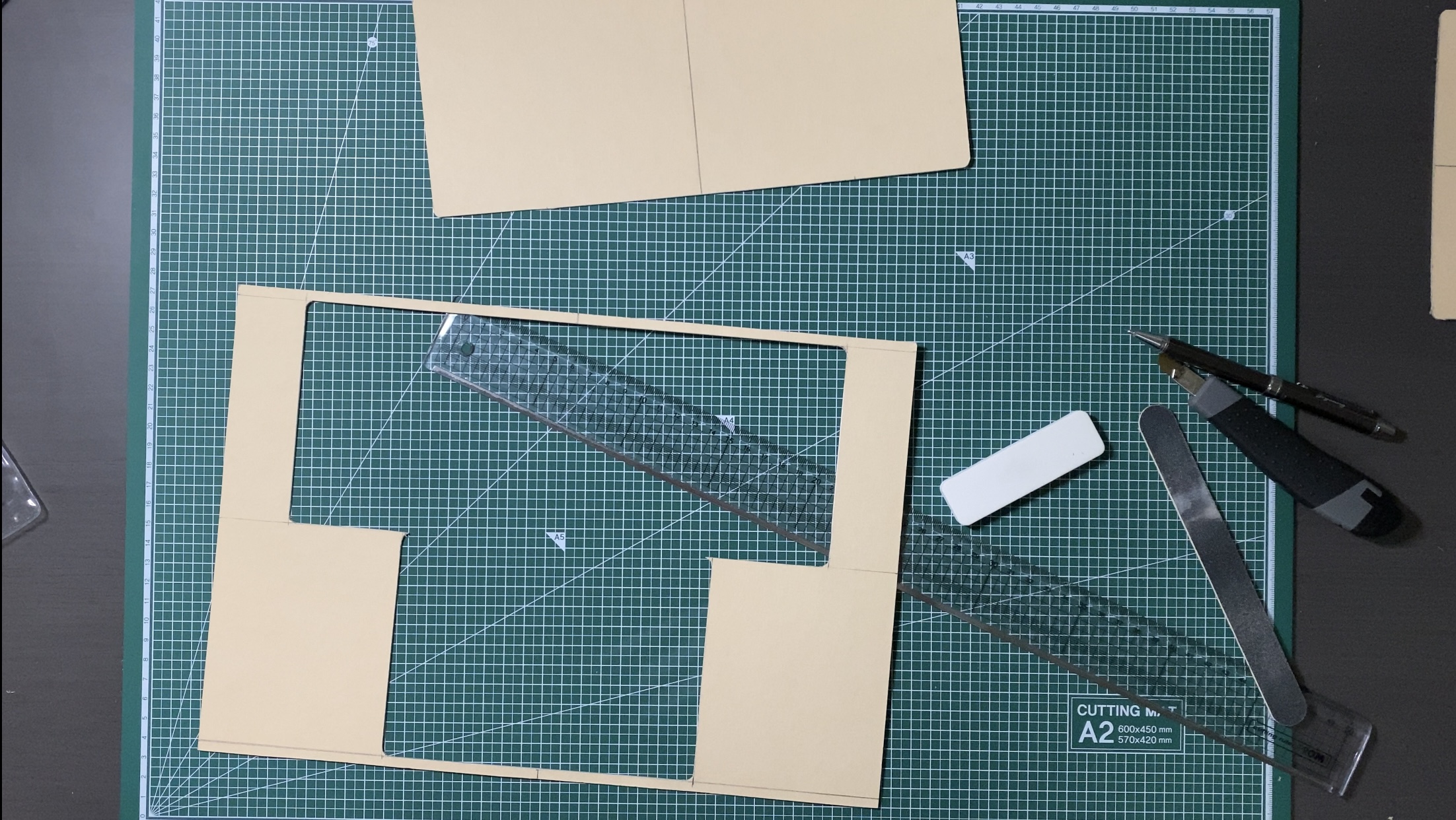 처음에는 원목으로 예쁘게 만들고 싶었지만 최대한 낮고 얇게 만들고 싶었기 때문에 안됐고 아크릴도 알아봤지만 사이즈를 잘 맞출지 확신이 없어서 하드보드지로 만들기로 했습니다.